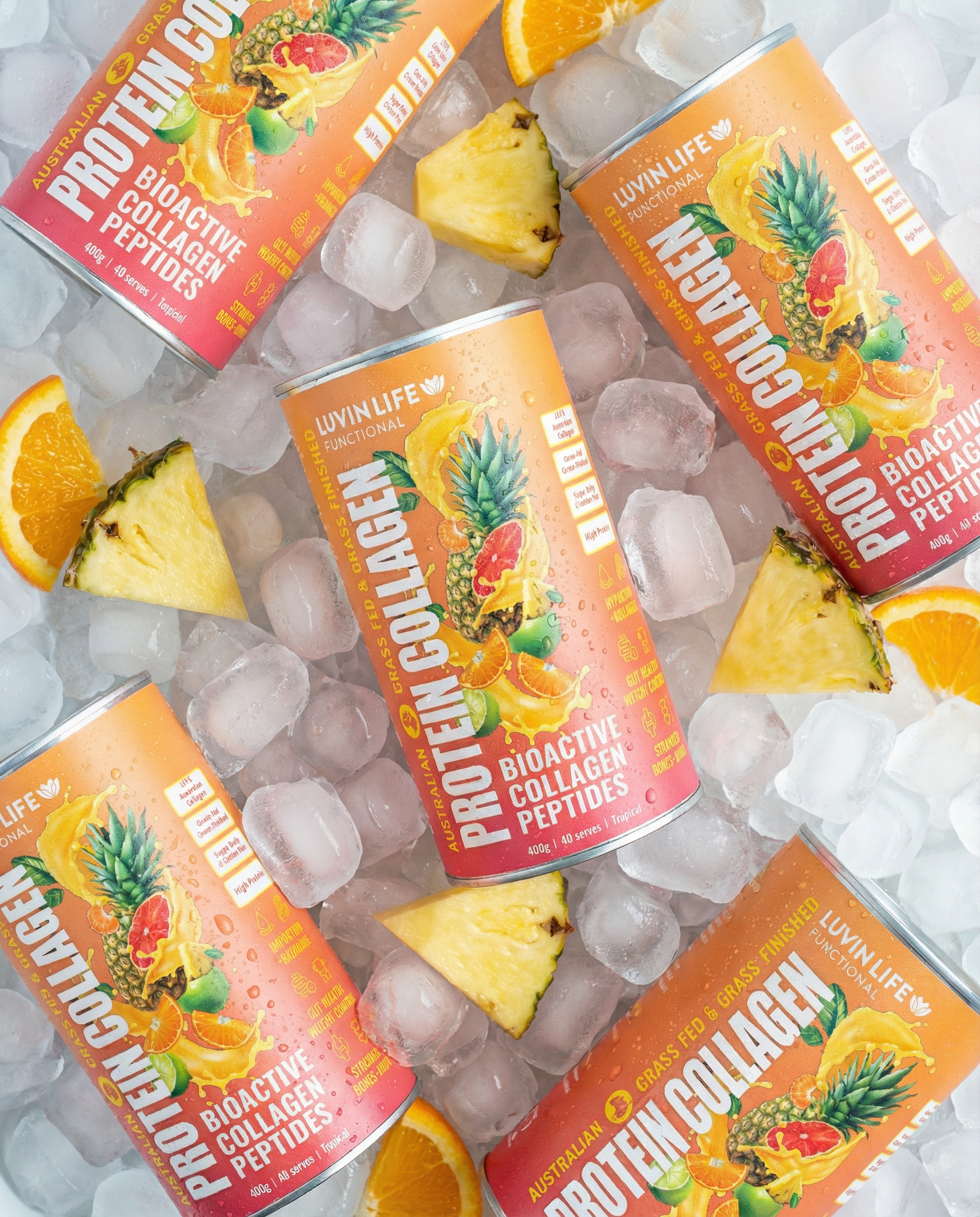 Enjoy a refreshing tropical boost with Luvin Life Collagen Peptides - a clean, naturally flavoured collagen blend crafted from premium Australian hydrolysed collagen peptides.