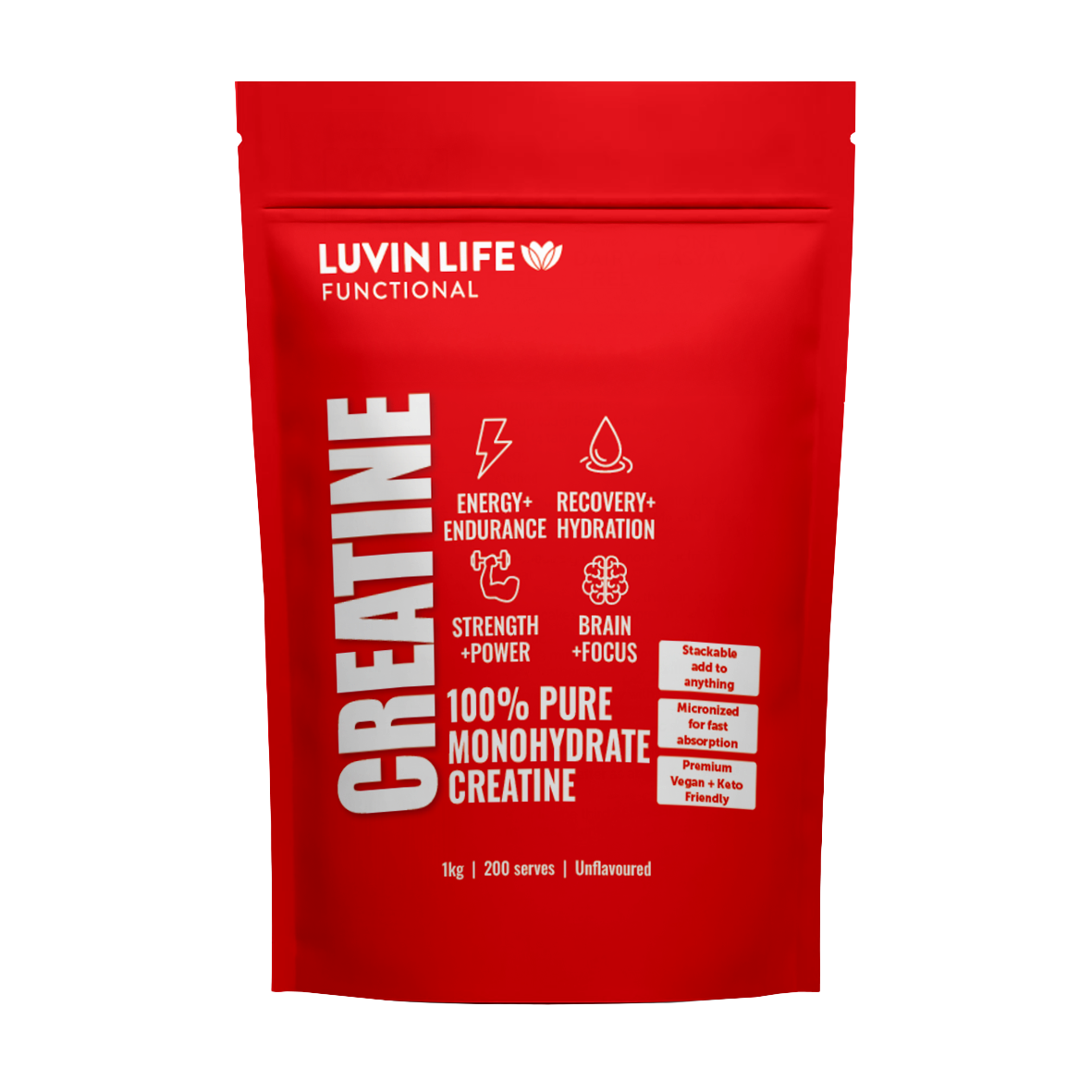 Maximise your performance with Luvin Life Creatine Monohydrate a clean, science-backed supplement designed to help you train harder, recover faster, and build lean muscle more efficiently.