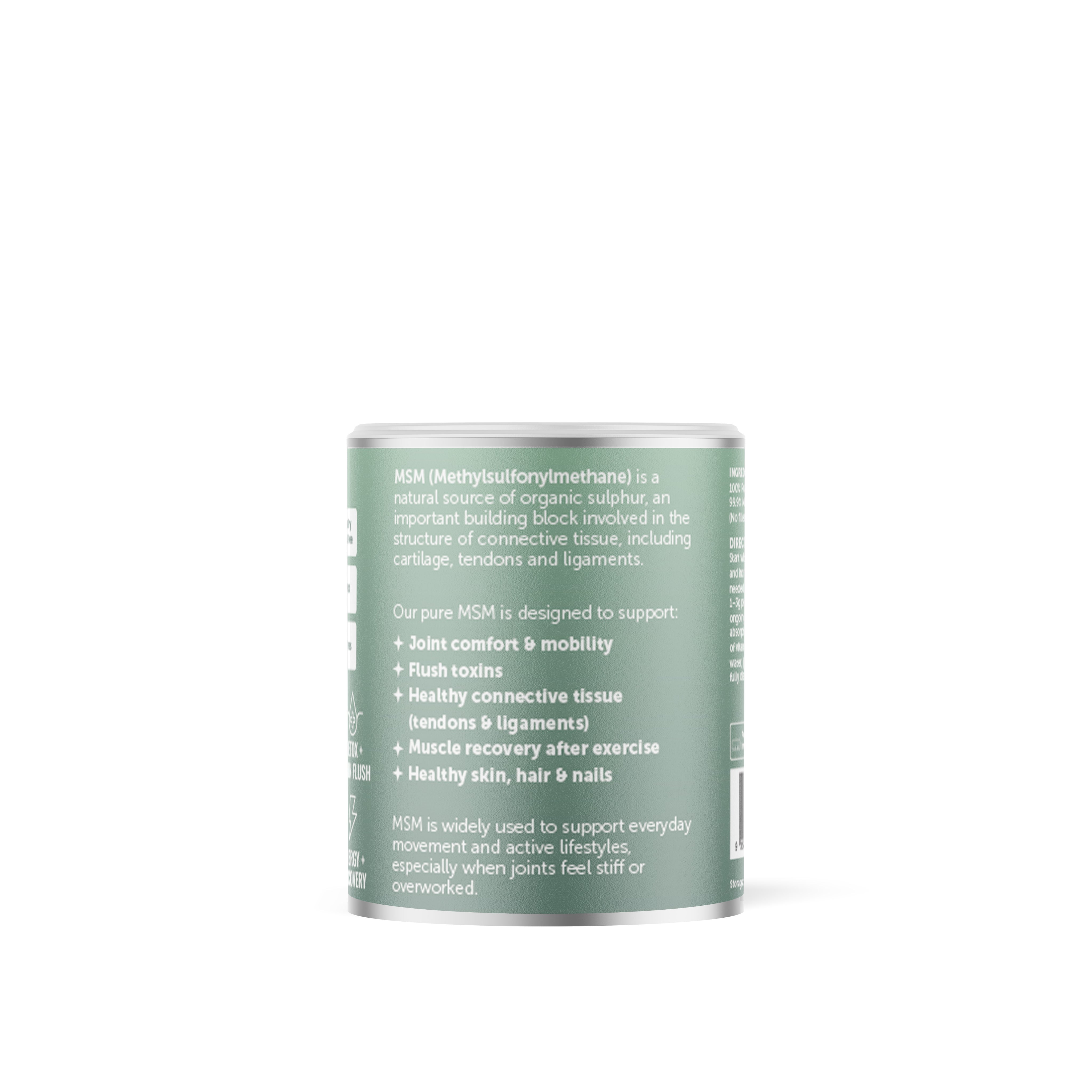 Thank you for such a wonderful product. I have been using MSM Powder since well before COVID, because of a Lung problem, and while I have kept using it, I have never had a cold virus or Flu. My husband & I did not have the Vaccine because of our health problems, and during the COVID period we never contracted the virus and have stayed free while taking MSM Powder. I would never be without it. Carolyn English